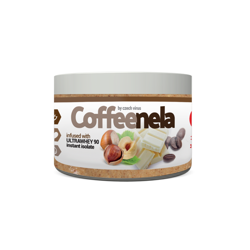 Lískové ořechy 79 %, Syrovátkový izolát instantní (CFM, Ultra Whey 90) 10 %, Bílá belgická čokoláda (cukr, kakaová hmota, sušené mléko, sojový lecitin) 10 %, Káva (čerstvě mletá) 1 % Alergeny: lískový ořech, sojový lecitin, mléko (z izolátu), laktóza (0,2 %)